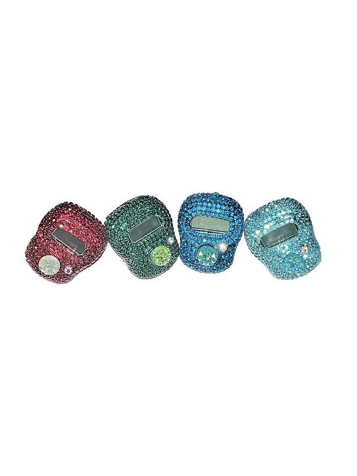 Tasbih digital dengan lapisan permata beragam warna.